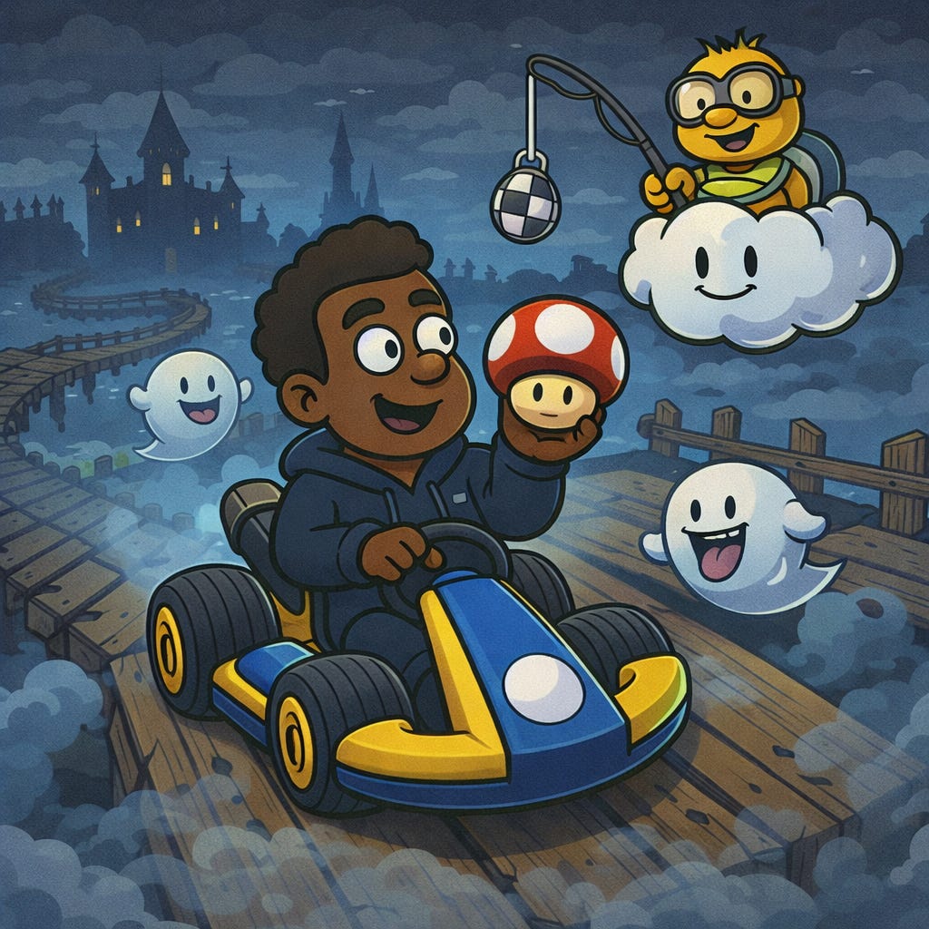I remember Mario Kart as a kid — specifically the ghost levels, where you can pick up a magic mushroom that gives you a massive speed boost. If you’re pointed in the right direction when you use it, it’s extraordinary. You gain ground instantly, you pull ahead, everything compounds in your favor. But if you’re not pointed in the right direction — if your angle is even slightly wrong — the mushroom doesn’t help you. It launches you off the edge of the track and into the abyss, where you have to wait for a little cloud with a fishing pole to fish you back out and set you back down where you started, having lost everything you gained.