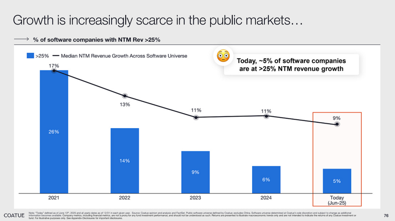 We're already witnessing this transformation in market dynamics. Many incumbent SaaS platforms are experiencing slowing growth rates, suggesting that value is beginning to migrate away from traditional process-oriented solutions. While it's not yet clear exactly where this value is accumulating, the evidence points toward goal-oriented AI solutions as the primary beneficiaries of this shift.